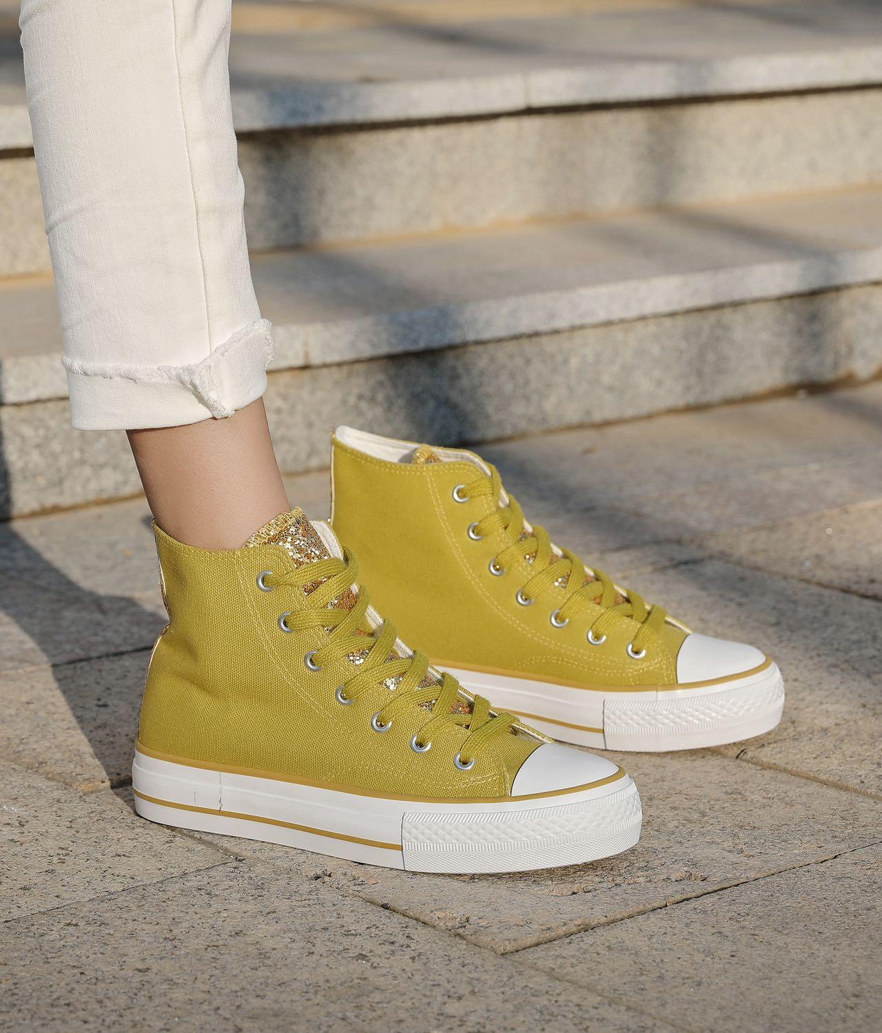 Baskets montantes en toile jaune moutarde