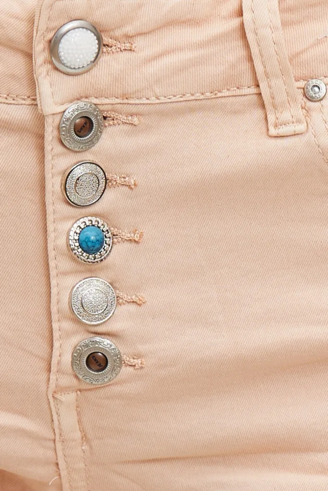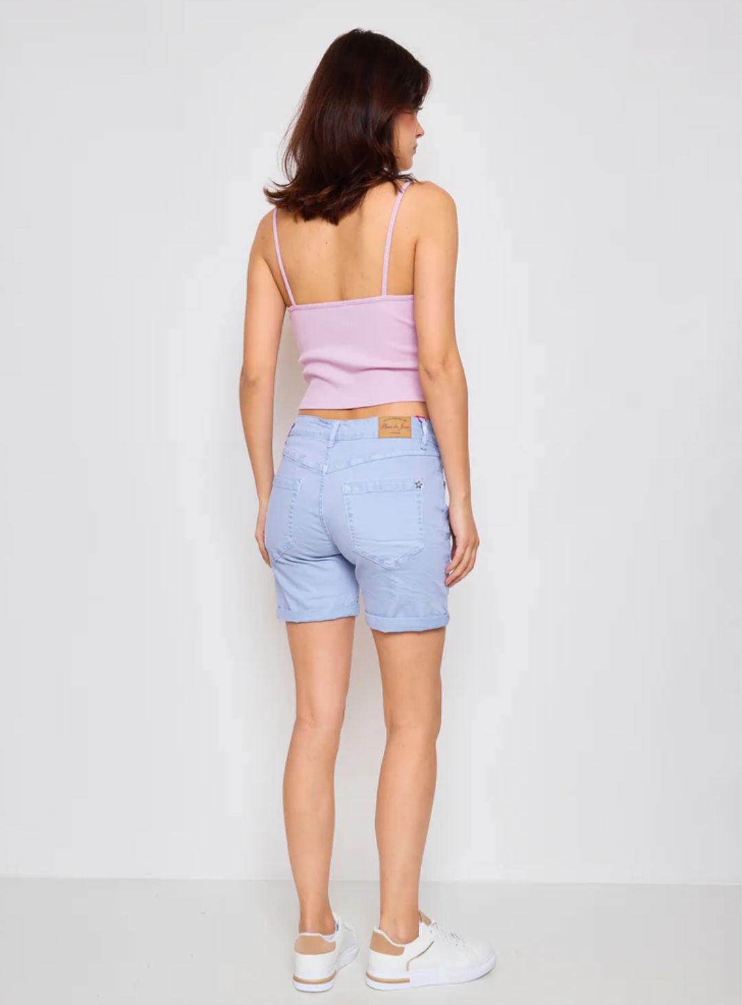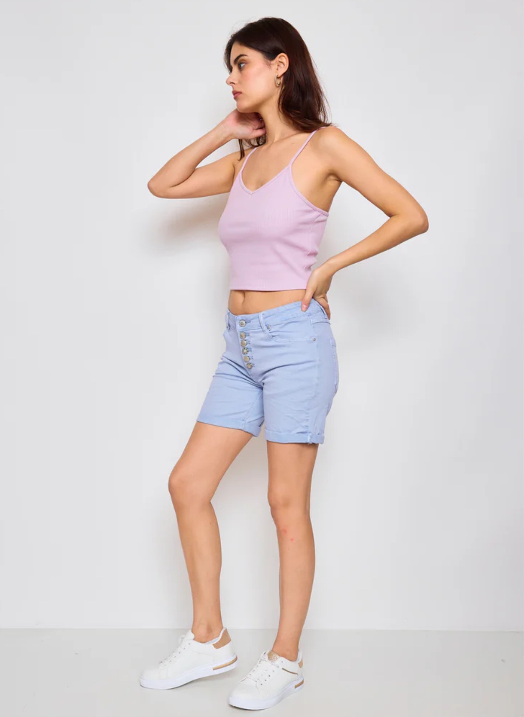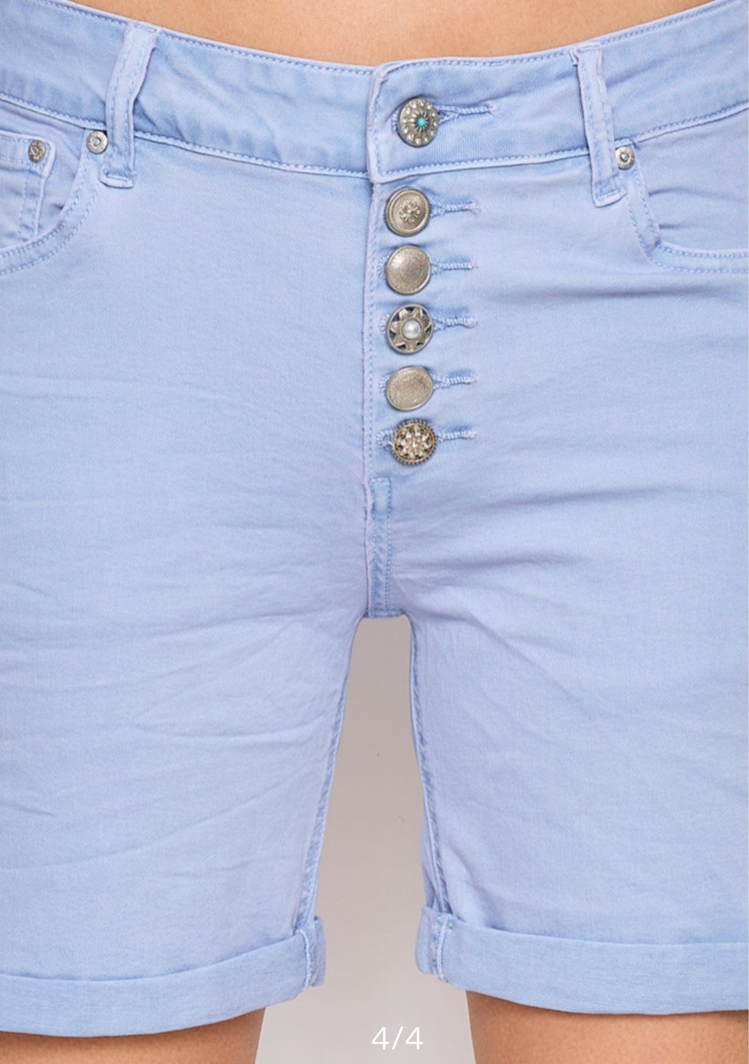Laissez-vous séduire par ce short en jean bleu ciel, parfait pour les journées ensoleillées. Sa coupe flatteuse mi-longue et ses boutons apparents à l’avant ajoutent une touche rétro pile dans la tendance. Fabriqué dans un denim léger et confortable, il vous accompagnera toute la saison.